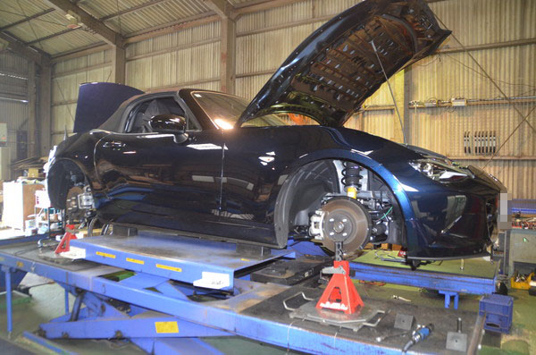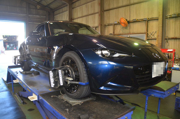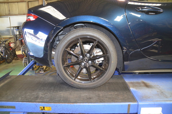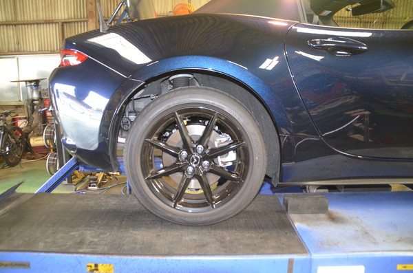 NDロードスターでご来店頂きCリング車高調の車高調整です。