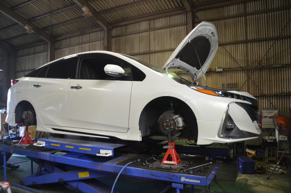 プリウスPHV ZVW52 車高調交換と四輪アライメント調整