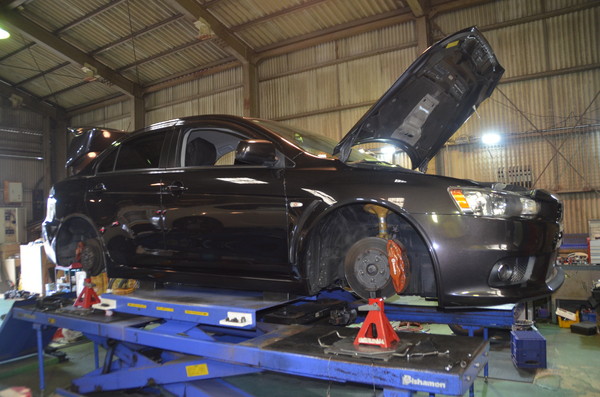 ランエボ10でご来店頂きダウンサス交換のご依頼です。