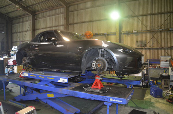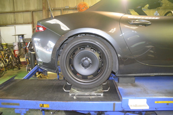 ND系 ロードスターでご来店頂き車高調整 1G締め直し 四輪アライメント調整のご依頼です。