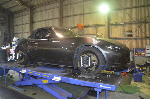 ロードスター ND5RC 1G締め直しと四輪アライメント調整 車高調整