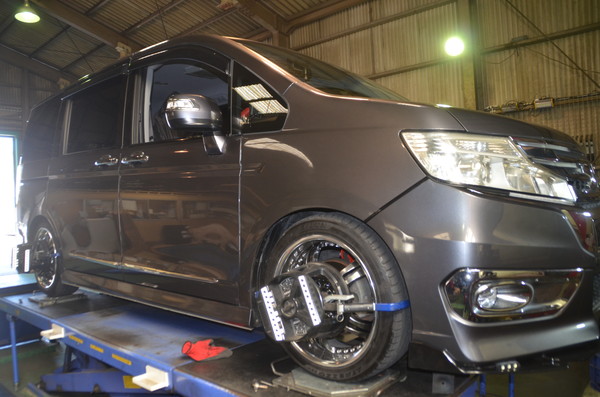 ステップワゴンスパーダでご来店頂き車高調交換のご依頼です。