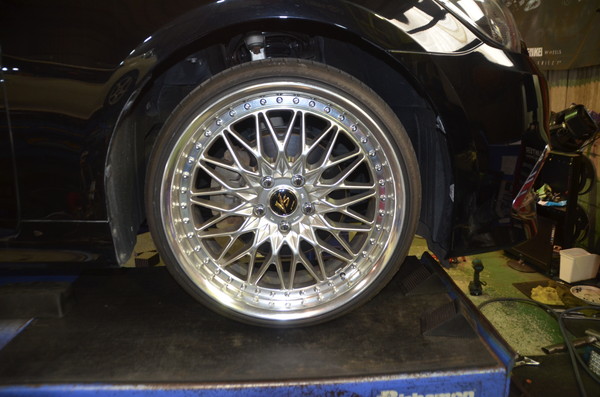 タイヤの外径がちょっと小さいのでフェンダーまでのクリアランスは多く見えますが。