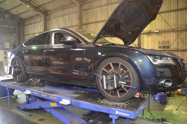 アウディA7でご来店頂き1G締め直しと四輪アライメント調整のご依頼です。