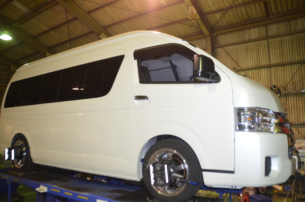 リアの車高に合わせて純正トーションバーボルトで車高を下げて調整します。