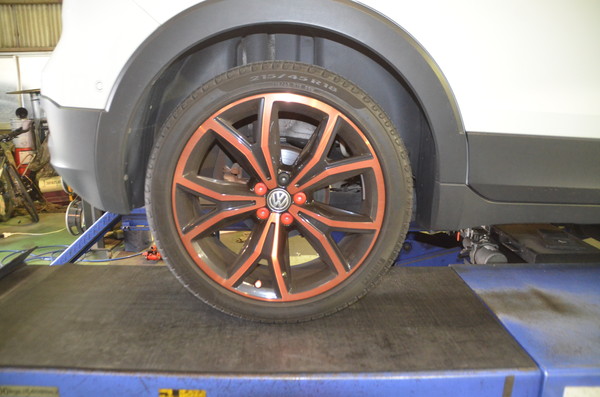 今回はタイヤ・ホイールを外してスプリング交換してますので1G状態で。