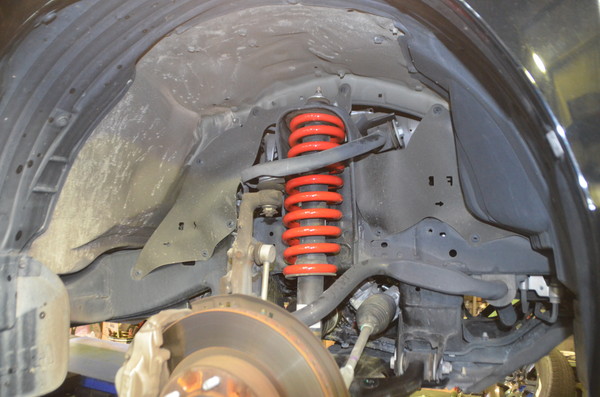 アッパーを外してノーマルスプリングからタナベのリフトアップコイルに交換。