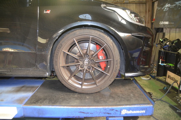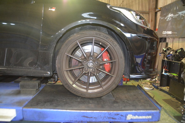 トー角は適度な数値に修正して抵抗少なくタイヤの持ち優先でセット。