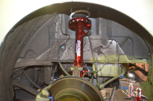 フロントはアッパーマウントのスライド機能を使って左右を修正。