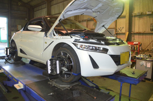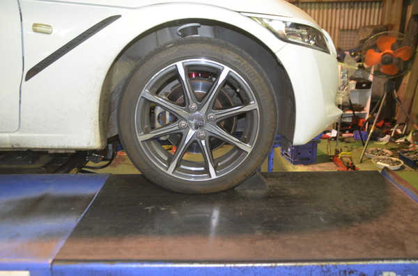 アライメントは以前取ってあるそうですがサスキット交換した後は結構な狂いが出ておりました。