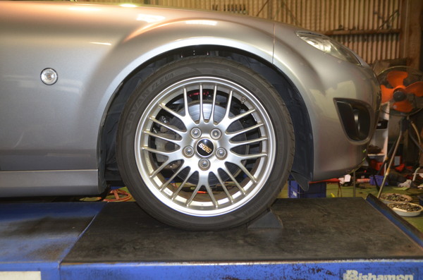 前後のキャンバー、キャスター、トーをキッチリ街乗り仕様で調整。