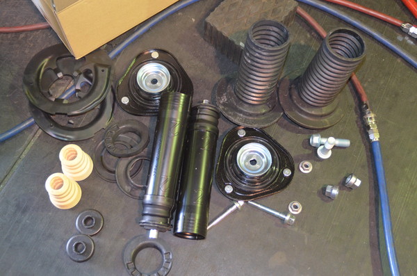 フロントはちょっと純正よりも長いスプリングですので縮めるのが大変ですね。