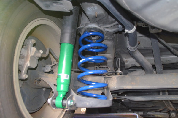 TEINの車高が上がるショックも検討されたそうですがスプリングでの車高アップになりました。