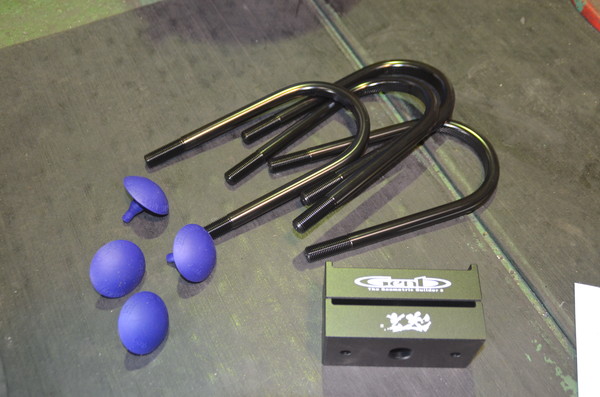 ショック、純正Uボルトを外して玄武のローダウンブロックを装着。
