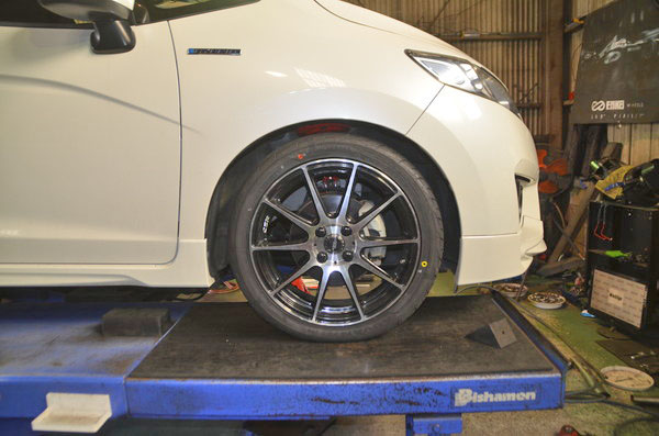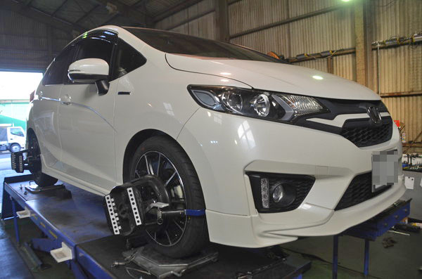 フィットハイブリッドでご来店頂きサスペンション交換のご依頼です。