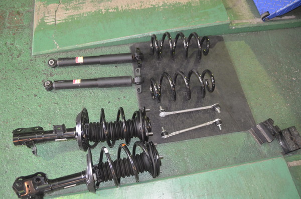ロアアームを外してスプリングとアジャスターを外して純正スプリングに交換。
