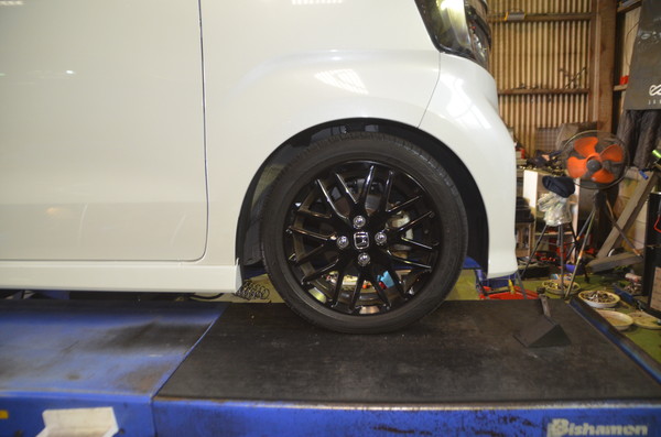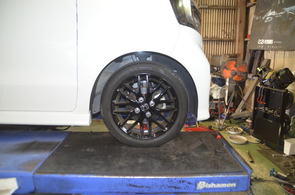 N-BOX Custom でご来店頂きダウンサス交換のご依頼です。