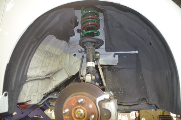 ショックを外して純正のスプリングからTEINのスプリングに交換。