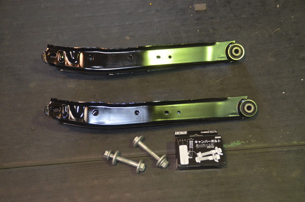 フロントにはラルグスのキャンバーボルトを装着して角度を微調整します。