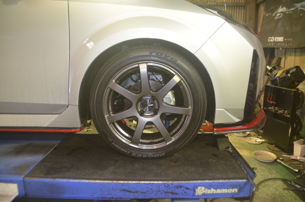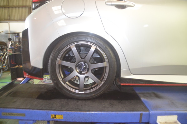 FE13 オーラ ニスモ ダウンサスに交換と四輪アライメント