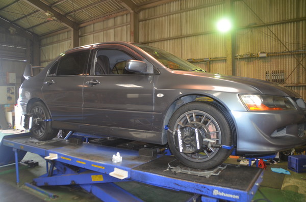 ランサーエボリューション8MRでご来店頂き四輪アライメントのご依頼です。