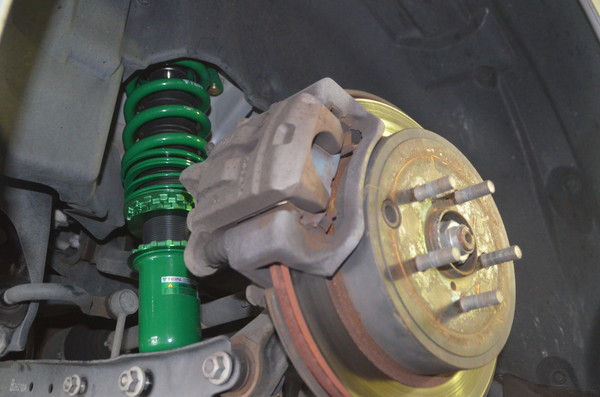 まずは前後純正ショックとハイテクダウンサスを外してTEINの車高調に交換。