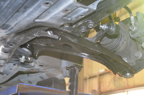 古くなったロアアームを外して新品に交換しました。