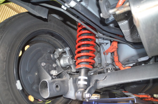 トーションビーム車ですがショックアブソーバーとスプリングが一体形状です。