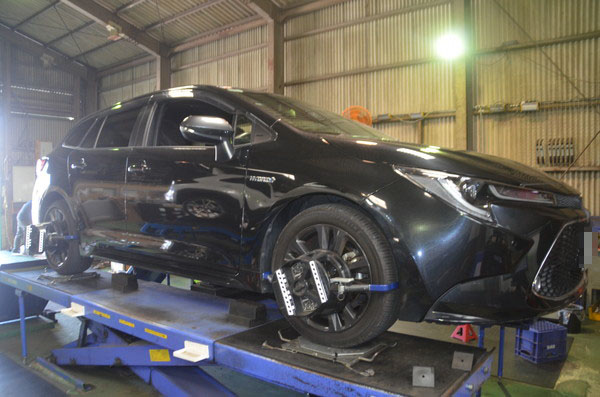 カローラツーリングでご来店頂き四輪アライメント調整のご依頼です。