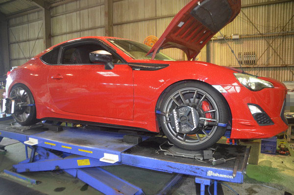 86でご来店頂き四輪アライメント調整のご依頼です。