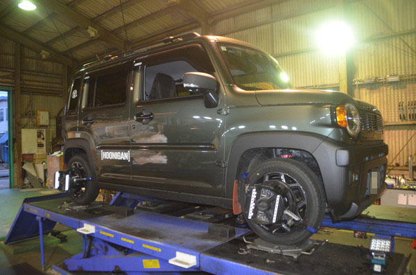ハスラータフワイルドでご来店頂き四輪アライメント調整のご依頼です。