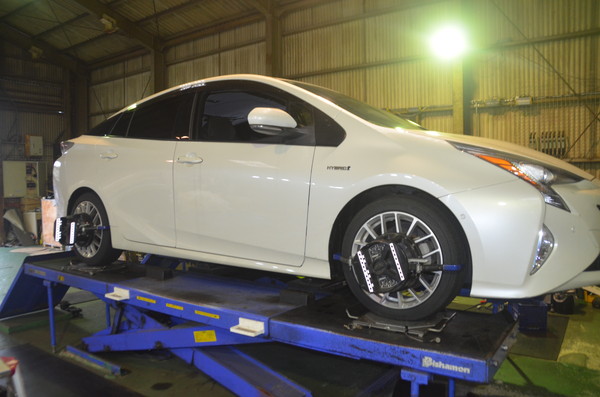 50系 プリウスでご来店頂き四輪アライメント調整のご依頼です。