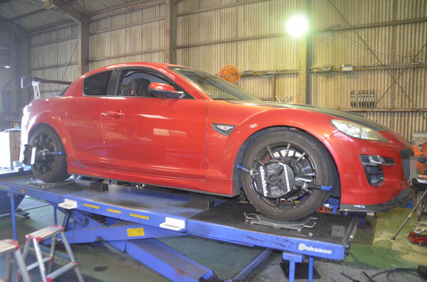 RX-8でご来店頂き四輪アライメント調整のご依頼です。