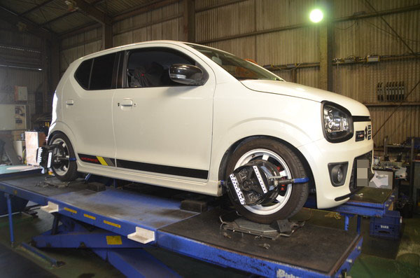 アルトワークスでご来店頂き四輪アライメント調整のご依頼です。