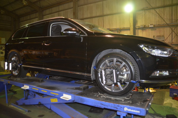 VW パサートでご来店頂き四輪アライメント調整のご依頼です。