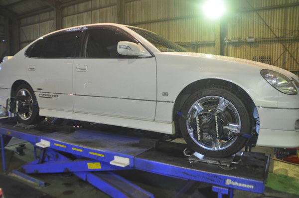 アリスト JZS161 アリストでご来店頂き四輪アライメント調整のご依頼です。