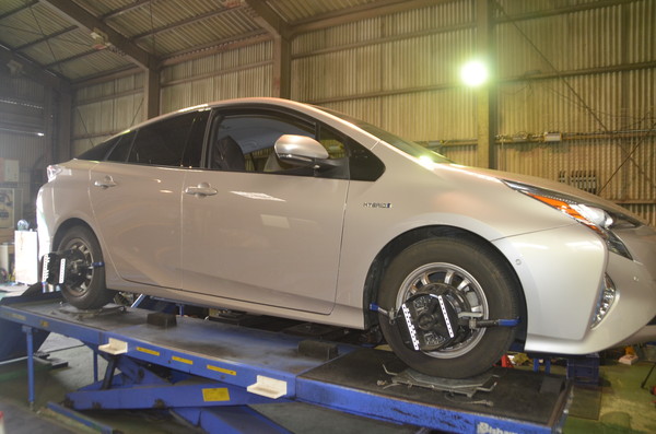 50系 プリウスでご来店頂き四輪アライメント調整のご依頼です。