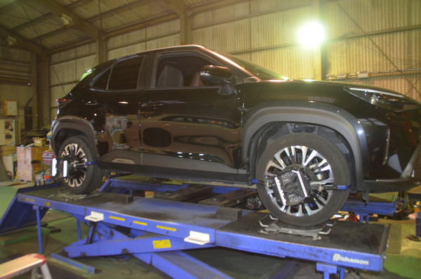 ヤリスクロスでご来店頂き四輪アライメント調整のご依頼です。