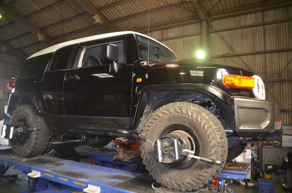 FJクルーザーでご来店頂き四輪アライメント調整のご依頼です。