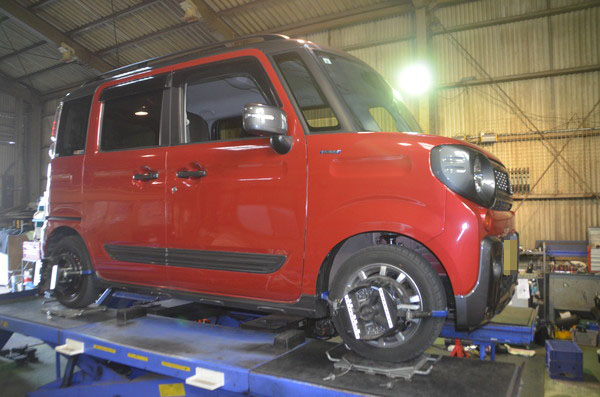 スペーシアギアでご来店頂き四輪アライメント調整のご依頼です。